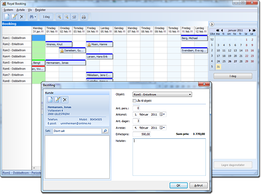 Legg enkelt inn en reservasjon ved å merke av dagen i reservasjonsoversikten og tast inn kundeinformasjon. Kunden kan få bekreftelse via SMS eller e-post.