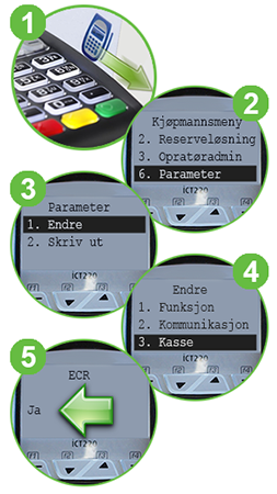- Hvis det står "ECR Nei", endrer du dette til "Ja" ved å trykke OK + + OK.
